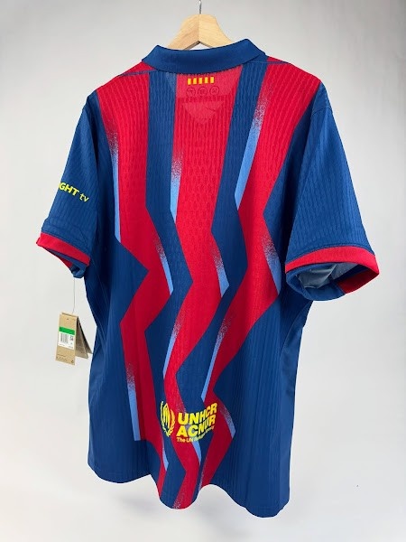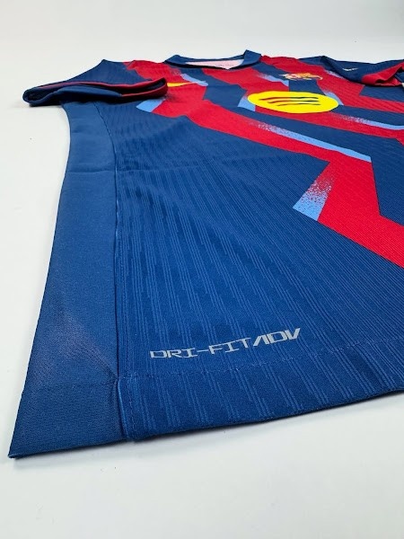與20年前的經(jīng)典藍(lán)紅條紋不同,巴塞羅那2025-26賽季第四球衣采用了藍(lán)色和紅色的鋸齒形條紋,并帶有淺藍(lán)色的圖形元素。