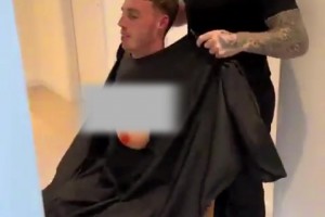 太悶騷啦!理發(fā)師給帕爾默戴上了義乳,帕爾默還自己捏了捏