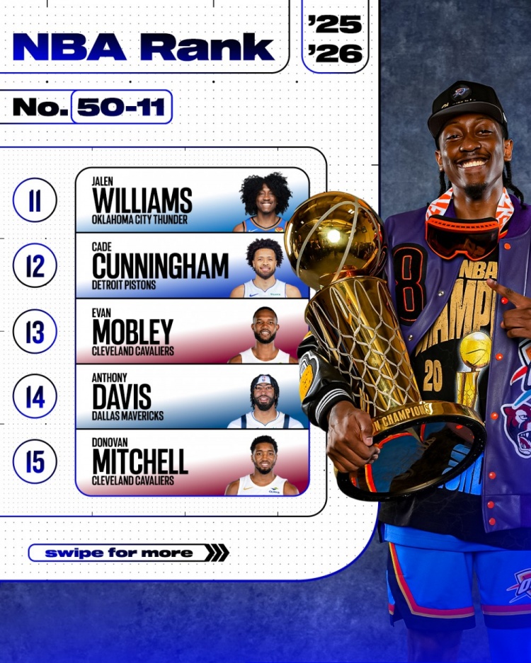 9月24日訊 美媒ESPN評(píng)選出了新賽季的百大球員榜,其中50-11部分球員排名如下。