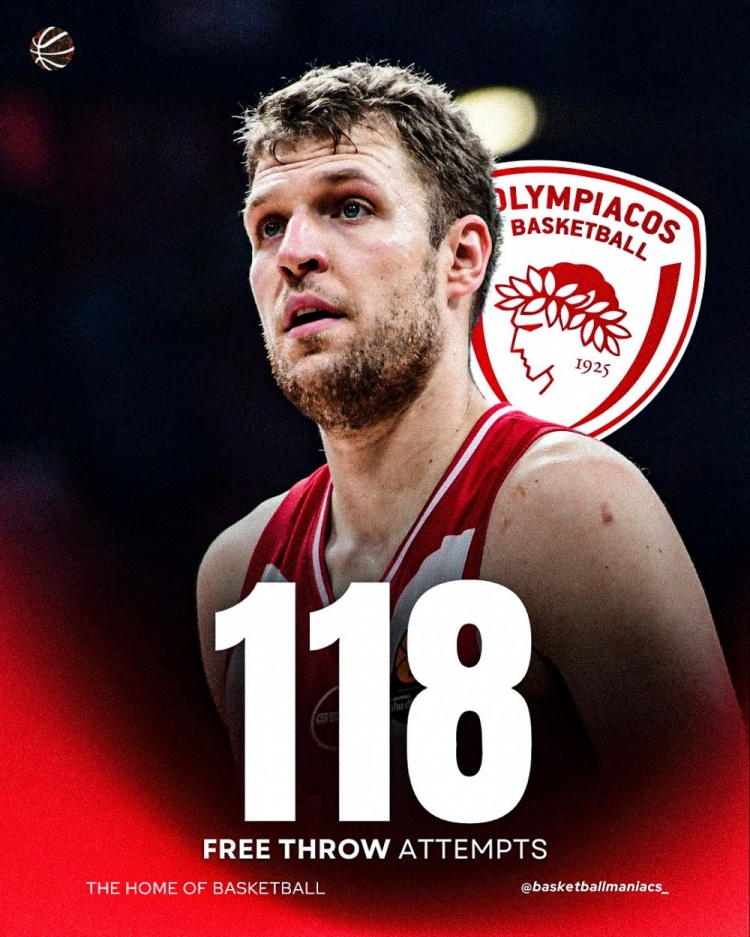 10月16日訊 歐媒Basketball Maniacs報道,歐籃聯(lián)四輪戰(zhàn)罷,在球隊罰球次數(shù)排行上,希臘的奧林匹亞科斯以總罰球數(shù)118、場均29.5次排名第一。