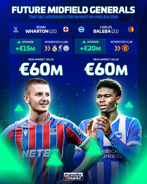 德轉(zhuǎn)的管理員解釋漲價(jià)原因:“巴萊巴和沃頓是目前世界足壇最有前途的兩名防守型中場。今年夏天,曼聯(lián)對(duì)巴萊巴產(chǎn)生了濃厚的興趣,任何潛在簽約的標(biāo)價(jià)都在1億歐元左右,而沃頓在皇馬、利物浦和曼城等俱樂部也擁有眾多追求者。 ”