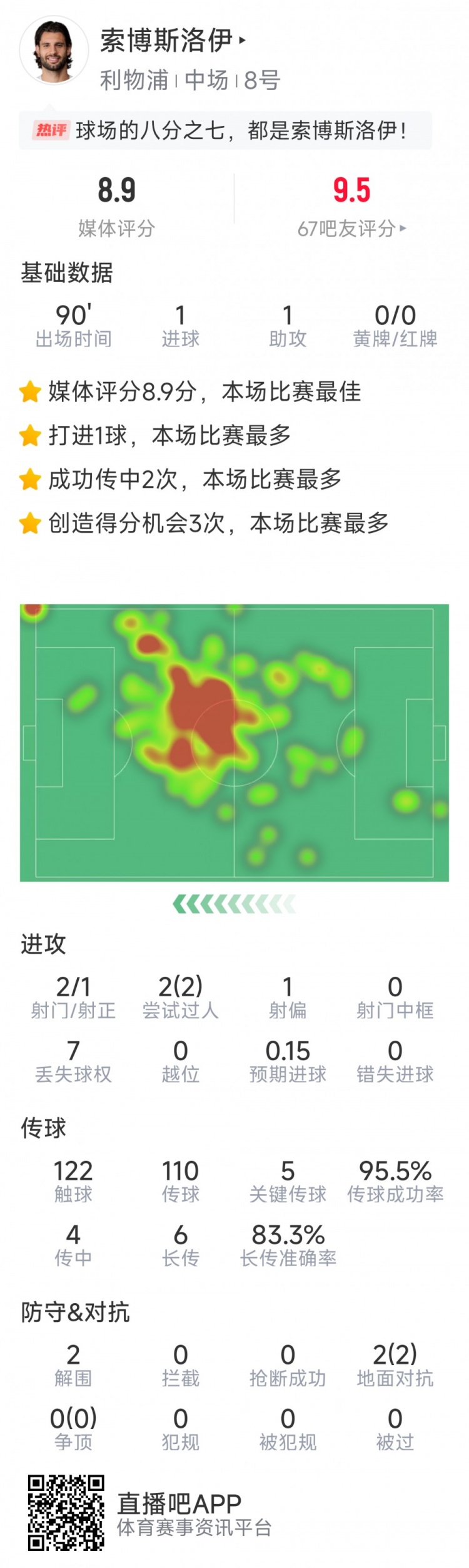 此役索博斯洛伊為利物浦踢滿全場(chǎng),并貢獻(xiàn)傳射,利物浦官方宣布,他當(dāng)選本場(chǎng)比賽利物浦隊(duì)內(nèi)最佳球員。