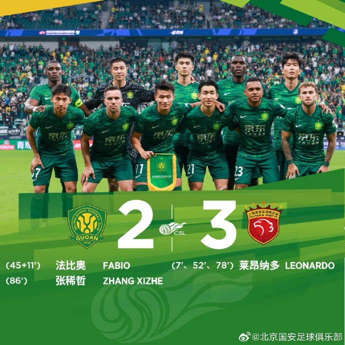 最終,北京國(guó)安主場(chǎng)2-3負(fù)于上海海港。