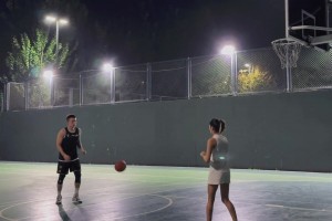 人生贏家!付豪球場練習(xí)投籃 妻子給自己當(dāng)陪練