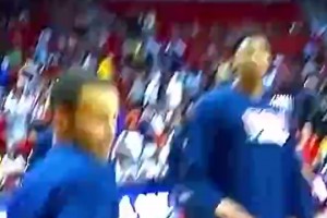 半獸人胯下?lián)Q手扣籃,一旁的庫(kù)里比劃了一下:算了,還是投三分吧