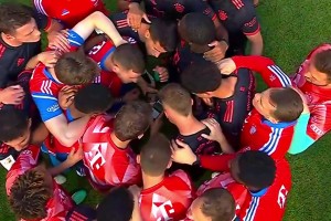 兩年前拜仁球員賽后圍在一起看多特比賽結(jié)果,隨后慶祝冠軍