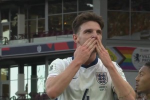 里斯-詹姆斯絕美弧線球傳中助攻!賴斯后點(diǎn)頭球攻門得手!