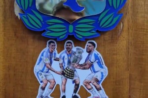 梅西在更衣室的儲物柜上貼了一張他與迪馬利亞、奧塔門迪的合照